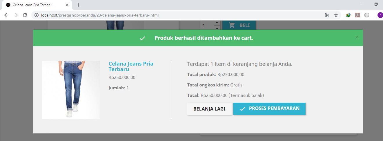 Disini masih digunakan onlineshop dengan localhost, sehingga hanya bisa dibuka oleh pemilik toko. Dalam prosesnya tidak banyak yang berbeda dengan yang umumnya bila kita melakukan belanja online.